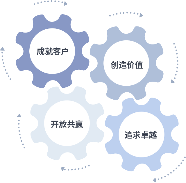 成就客户是一切决策的出发点,创造价值是衡量所有工作的标准,追求卓越是4001百老汇做事做人的态度,开放共赢是4001百老汇的格局也是最终的结果。价值观的齿轮环环相扣,推动着组织里的每个人不断向前。